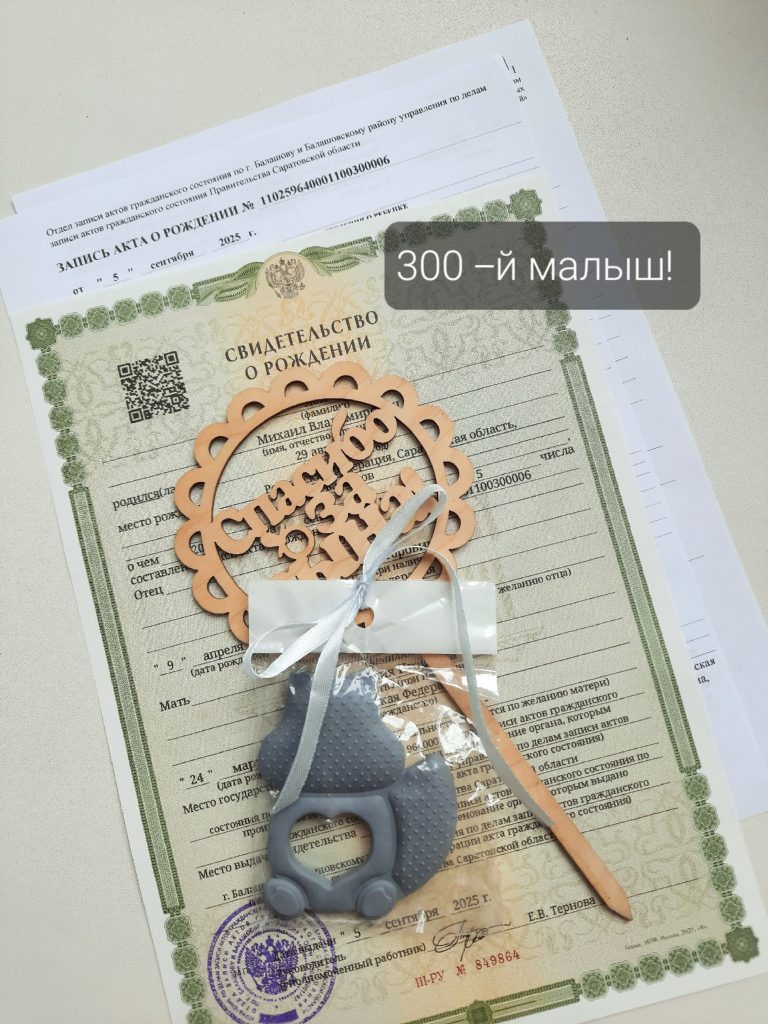 На этой неделе в отделе ЗАГС по г. Балашову и Балашовскому району управления по делам ЗАГС Правительства Саратовской области зарегистрирован 300-ый новорожденный.