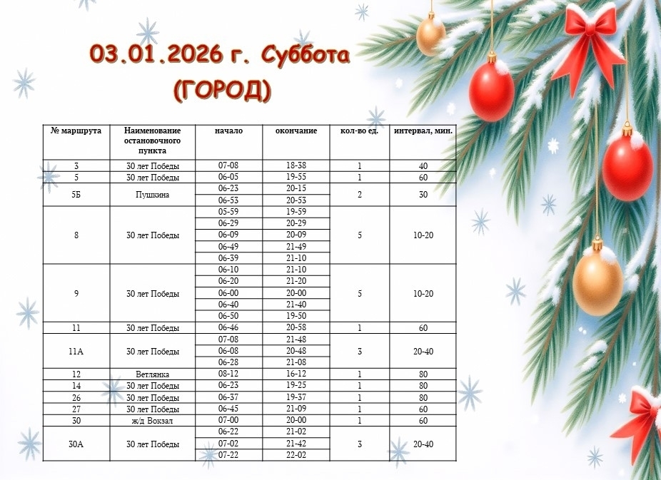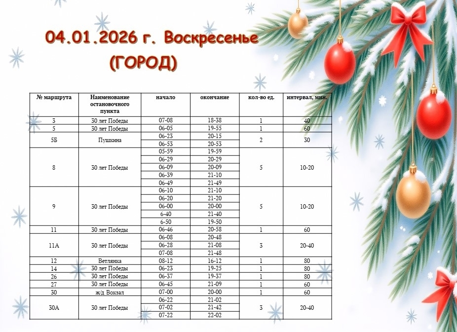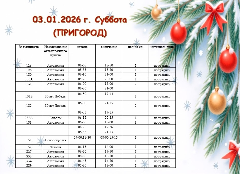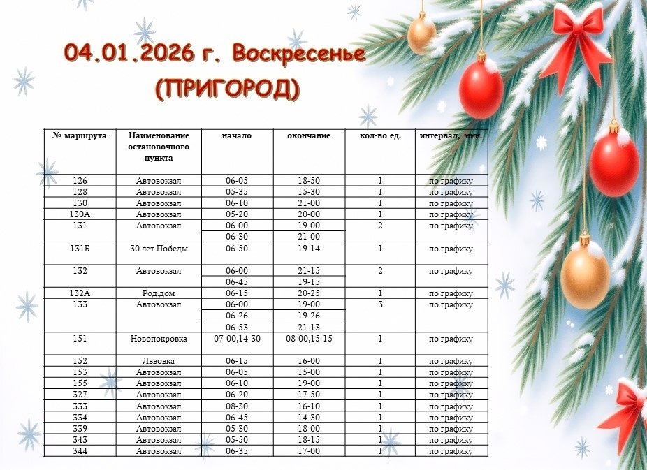 Уже с 5 января 2026 года — движение автобусов будет соответствовать обычному расписанию.
