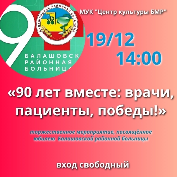 19 декабря в 14:00 в “Центре культуры” пройдёт торжественное мероприятие, посвящённое юбилею Балашовской районной больницы.