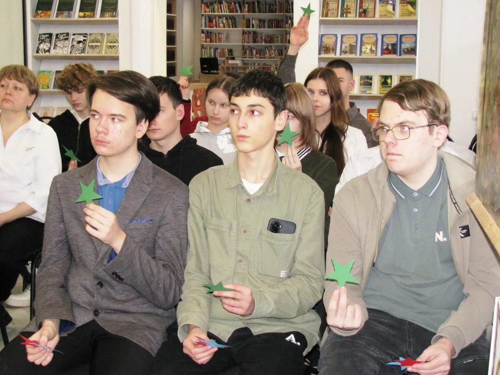 Встреча в библиотеке началась с интерактива: школьники приняли участие тематическом блиц-опросе, ответив на различные вопросы. Например, с какого возраста гражданин РФ подлежит призыву на военную службу, что такое альтернативная гражданская служба и другие.